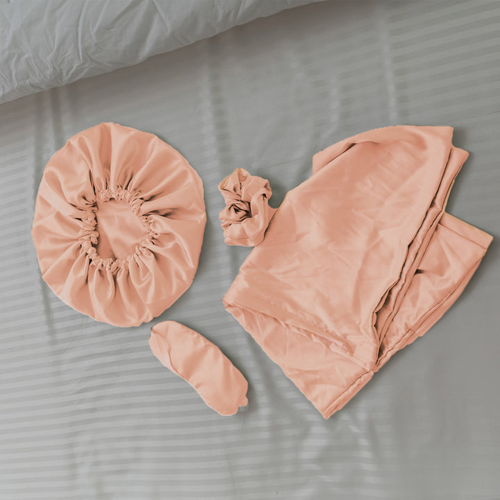 Treat yourself to a luxurious bedtime routine with the full Cloudy Satin Sleep Set, specially designed to protect your hair and skin while you sleep.