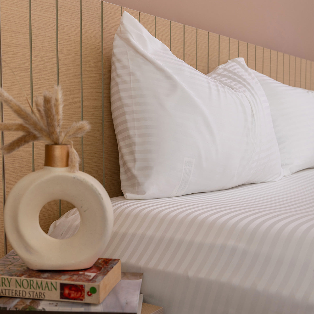 حوّل غرفة نومك لأجواء فنادق الـ 5 نجوم مع طقم ملايات استريب فندقية بالاستك من Cloudy.