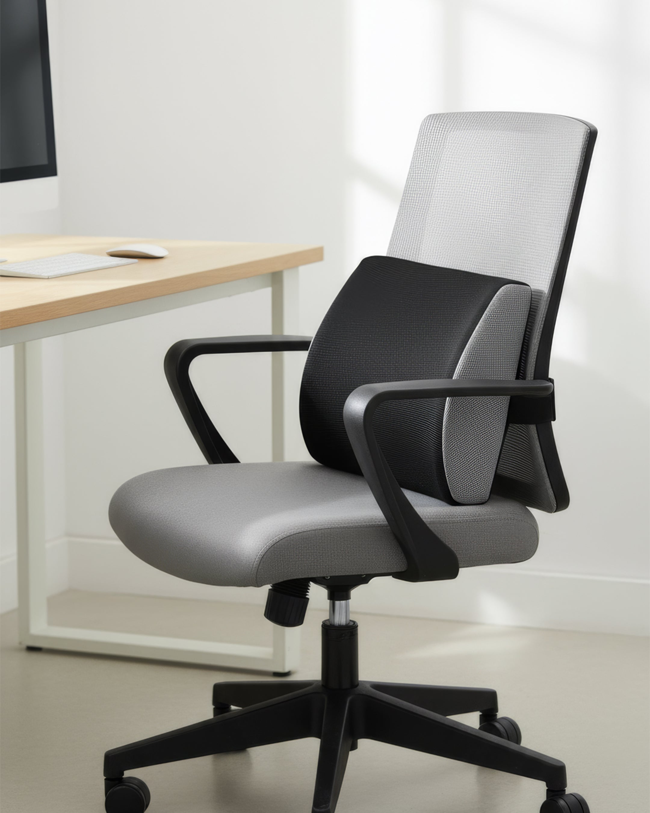 دعم مريح لأسفل الظهر: يساعد على تحسين وضعية الجلوس وتقليل الإجهاد أثناء الجلوس الطويل.