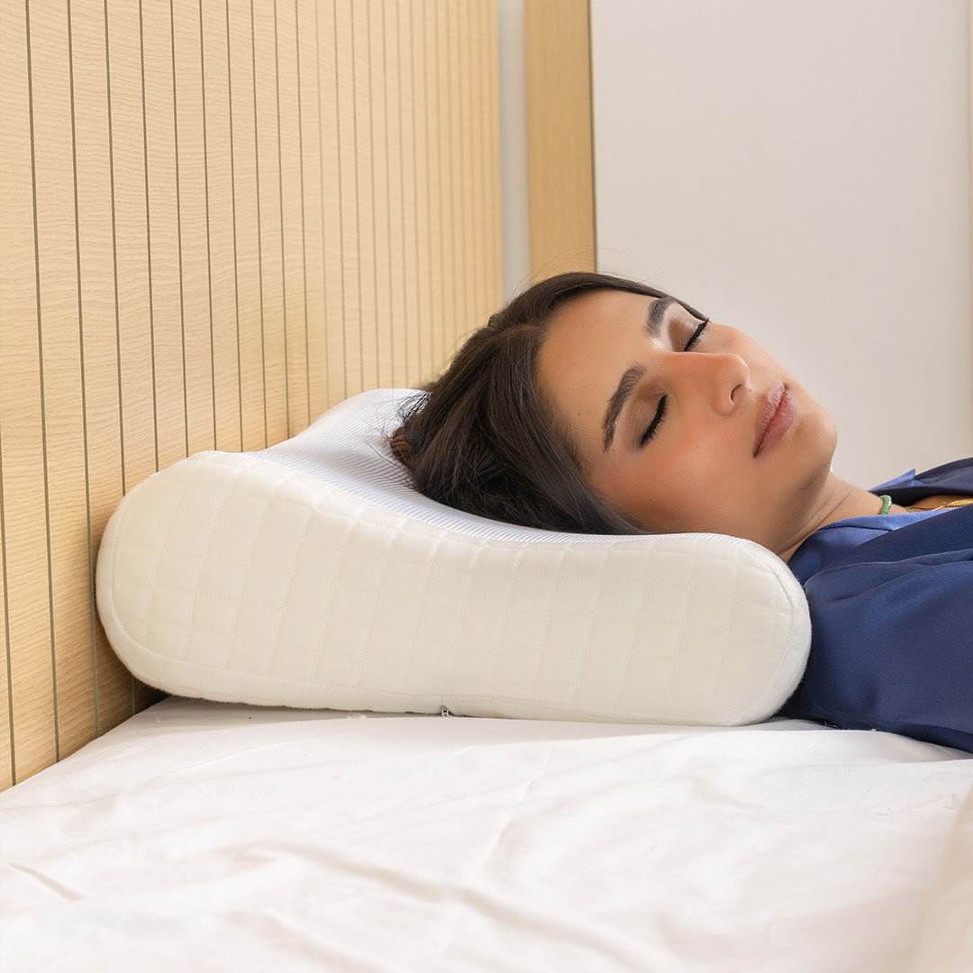 ميموري فوم متوسط الكثافة وعالي الجودة: تمتص الضغط بلطف وتتكيف مع شكل الرأس والرقبة، مما يحافظ على استقامة العمود الفقري ويقلل من التوتر العضلي أثناء النوم.